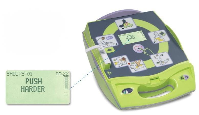 - Real CPR help Device advisory messages with voice prompts for quality CPR monitoring